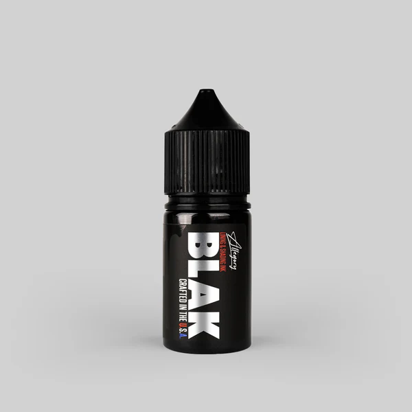 Allegory BLAK es una mezcla suave y consistente de pigmento líquido disperso. Esta tinta negra intensa se presenta en una botella Chubby Gorilla de 28 ml (1 oz). Las botellas cuentan con tapas dispensadoras a prueba de manipulaciones. El lote y la fecha de caducidad están impresos en cada botella.